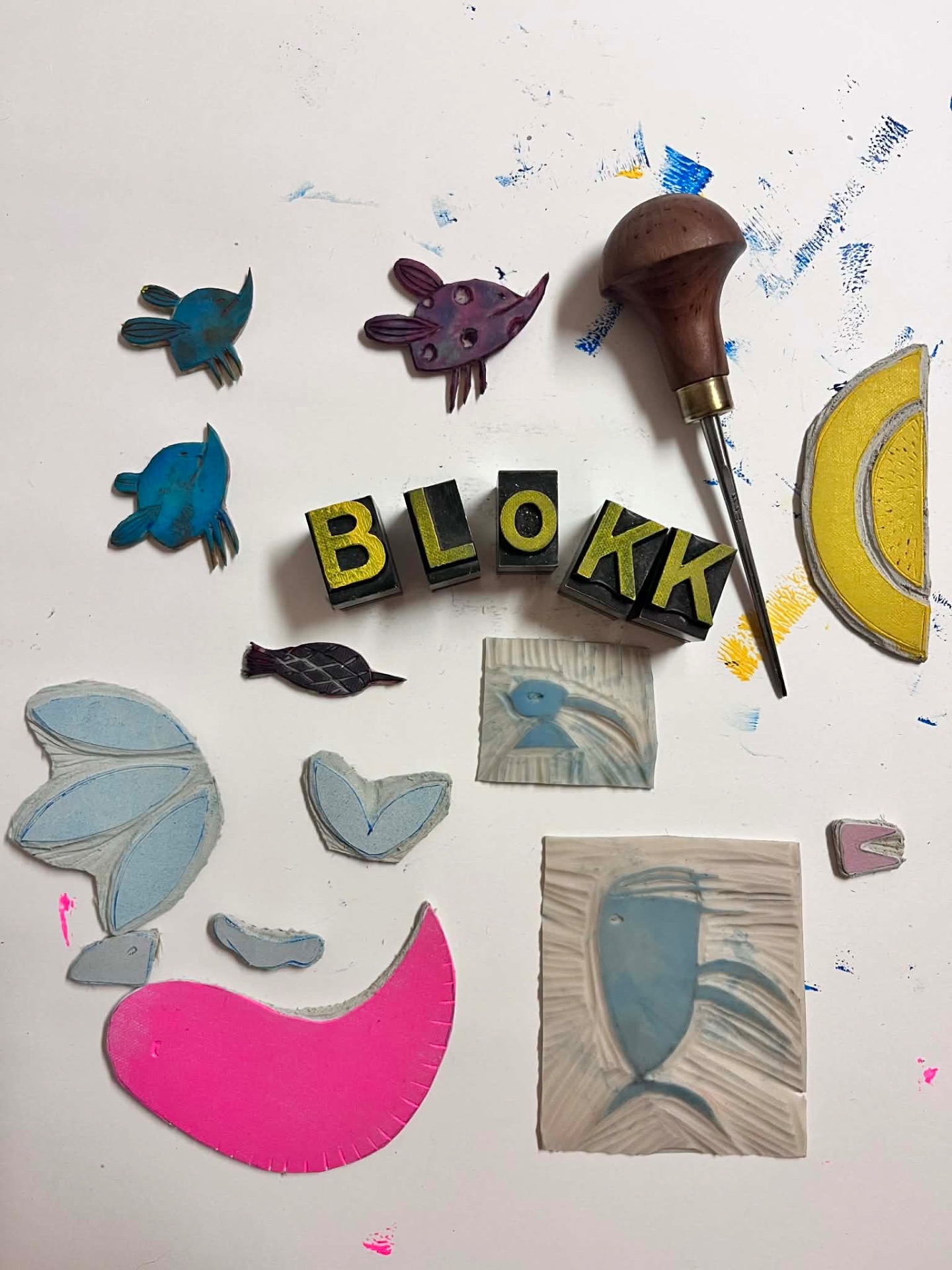 BLOKK Party er en sosial og skapende opplevelse der dere lager egne trykk sammen – med latter, farge på fingrene og null prestasjonspress.