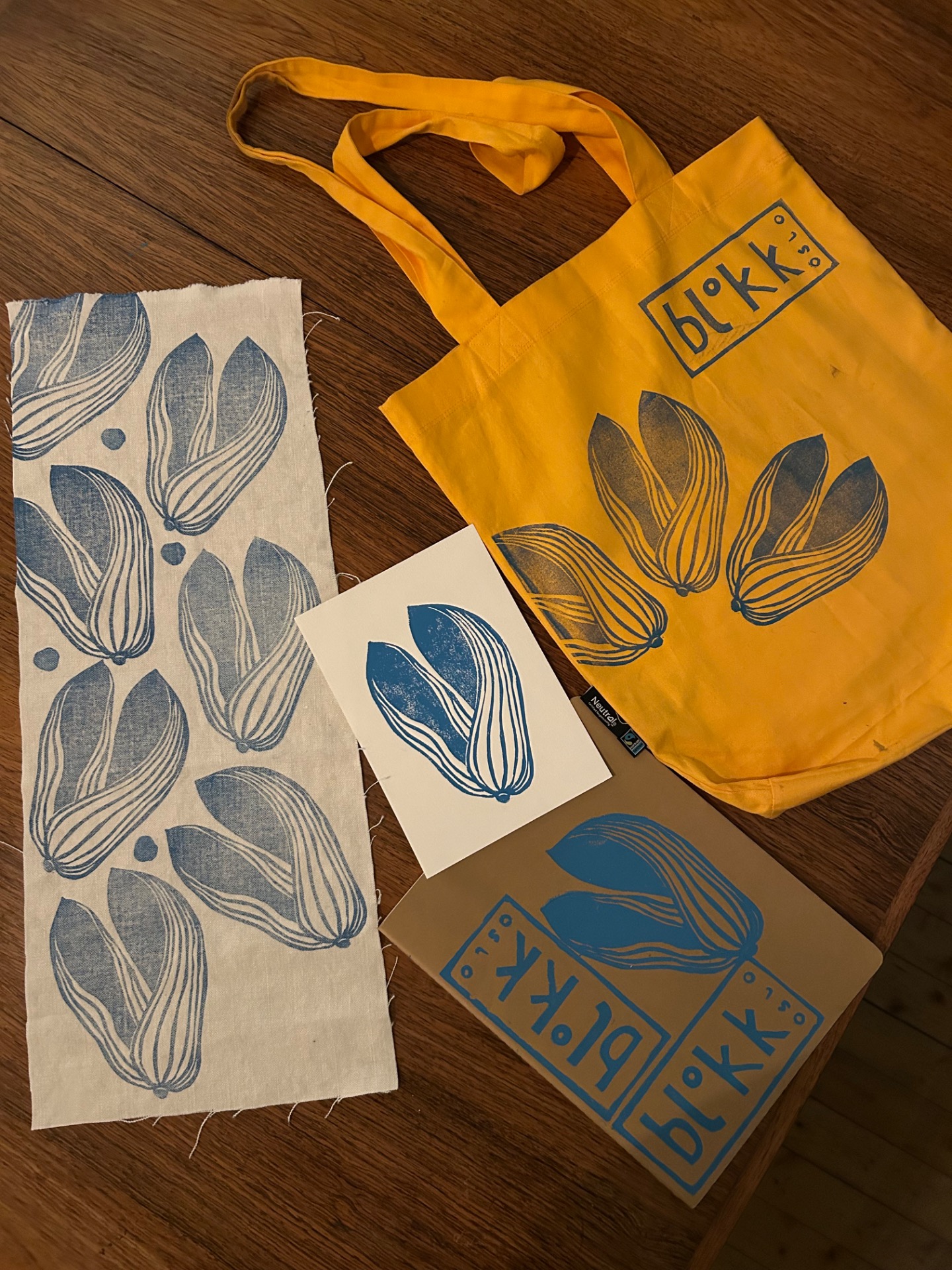 Inkluderer alt utstyr: linoplater, skjærekniver, forkle for å beskytte klær, linomaling for tekstil, ruller o.l